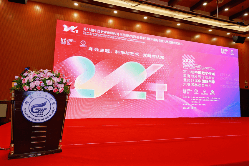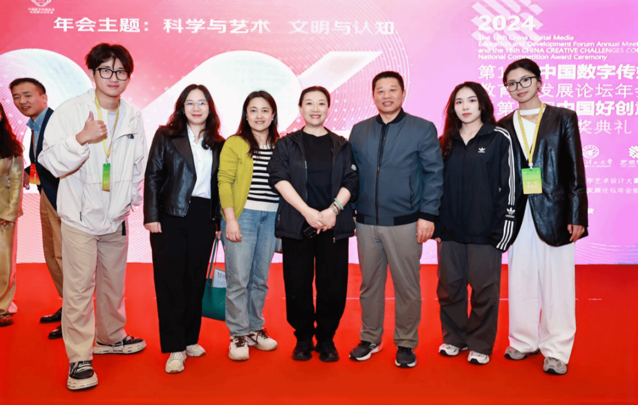 2024年11月1日—3日,第18届中国数字传媒教育与发展论坛年会暨第18届中国好创意暨全国数字艺术设计大赛国赛颁奖典礼在桂林隆重举行。我院获奖师生代表唐丽春教授、邓晰副教授、徐扬副教授、裴彦西、徐蓉蓉同学参加了本次颁奖典礼。