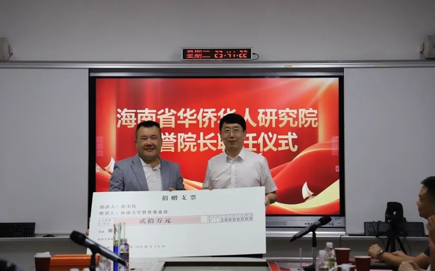 彭小仕先生表示,很荣幸被聘为海南省华侨华人研究院的荣誉院长,这既是一份荣誉,更是一份责任。海南省华侨华人研究院作为华侨华裔研究领域的重要平台,自己作为研究院的一员,未来将会与团队一起为华侨华人研究事业的繁荣发展贡献更多的智慧与力量。
