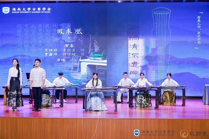 音乐会现场,来自北京的蘭幽学堂、上海赵朴初研究会的圆通琴社、湖北宜昌的九嶷琴社、福建泉州的素心琴堂、江苏扬州的守艺琴坊、无弦堂斫琴坊、湖南岳阳文昌琴院、海南铉庐古琴、海南创目琴行的古琴爱好者分别以琴表意、以声还雅、以乐效贤、以礼致敬,共同推动海南古琴文化艺术向前发展和海南自贸港的传统文化传承与创新。