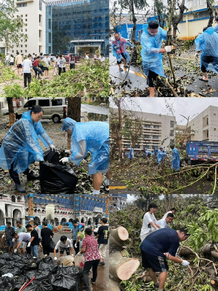 本站讯(通讯员 李政)今年第11号超强台风“摩羯”正面袭击我省,造成严重灾害,海大校园也受到了重创,尤其是基础设施受灾严重,房屋受损、树木倒伏,道路瘫痪。yl6809永利集团党委积极响应学校党委号召,第一时间组织党员先锋队,带领学院教职员工志愿者及学生志愿者开展灾后重建工作,清理田家炳楼、艺术大楼及周边,为共“净”校园,全力以“复”。