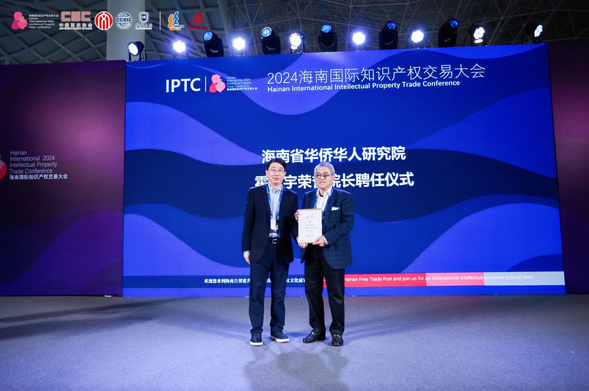 12月20日,海南省华侨华人研究院在海南国际会展中心举行霍震宇先生荣誉院长受聘仪式。海南省委统战部副部长、省侨务办公室主任曾晓明同志出席并致辞,海南省华侨华人研究院院长、yl6809永利集团院长郑立波教授为霍震宇先生颁发聘书。