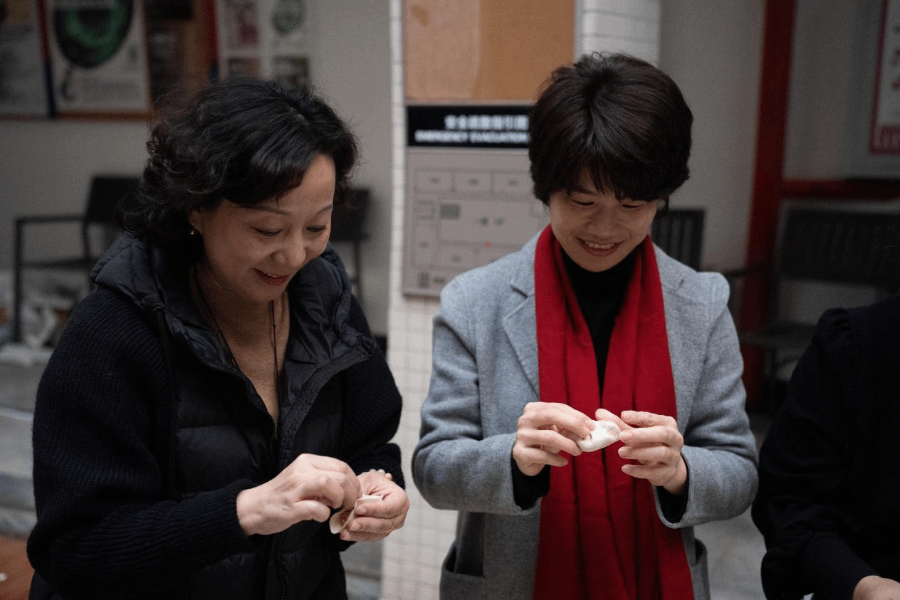 活动最后的环节是“集体包饺子”,大家围坐在桌前,包馅、捏边……经过一道道步骤,最终包出一盘盘好看又好吃的饺子,让大家感受到了传统年味的魅力。