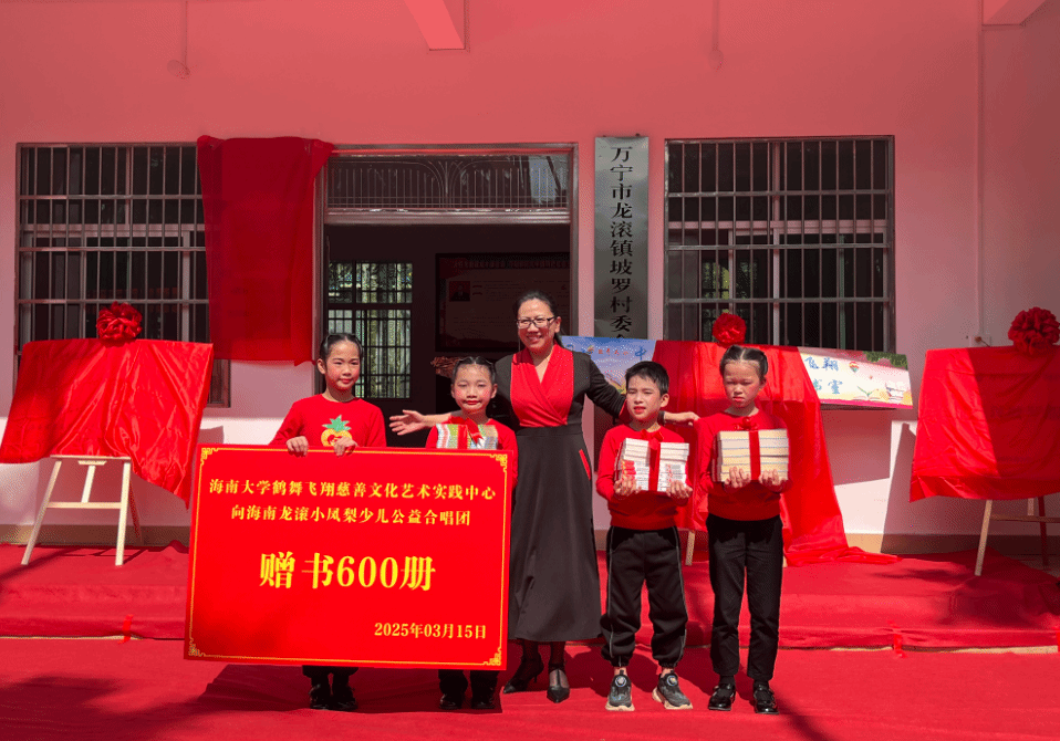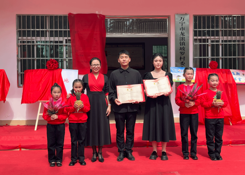 活动中,yl6809永利检测中心鹤舞飞翔慈善文化艺术实践中心向小凤梨合唱团赠书600册,助力乡村儿童美育发展,坡罗村委会、万宁市龙滚凤梨科技农业开发有限公司分别捐款10万元,青山村符氏三姐妹捐款3万元。坡罗村党支部书记陈漠青捐赠教学用钢琴,烟墩海壹号院子主理人冯清雄为学员赠书,为合唱团提供了硬件保障。