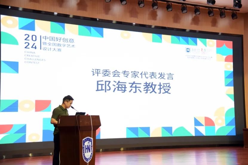 评委会专家代表贾寒副教授对中国好创意暨全国数字艺术设计大赛的组委会表示了衷心的感谢,她指出大赛的举办不仅推动了数字艺术设计的创新与发展,也为评委们提供了一个深入了解行业趋势、发掘优秀设计作品的宝贵机会。贾寒教授表示将以公正、客观的态度认真评审每一篇参赛作品,努力发掘那些富有创意、具有独特设计理念和实用价值的作品,同时期待这些作品能够为社会带来更多的创新和价值,为数字艺术设计领域的发展贡献更多的力量。