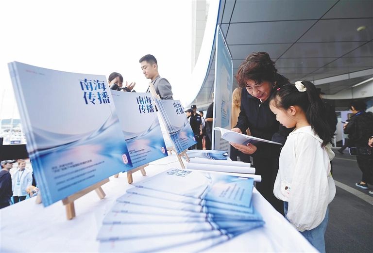 市民游客在第十届三亚国际文化产业博览交易会上阅读《南海传播》杂志。海报集团全媒体中心记者 沙晓峰 摄
